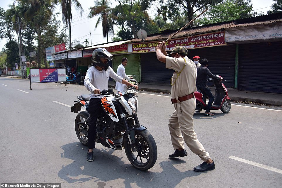 Video dan foto-foto aparat berwajib di India memukuli warga yang berada di luar rumah, entah hanya duduk-duduk di teras maupun bersepeda di jalanan, beredar luas di internet.