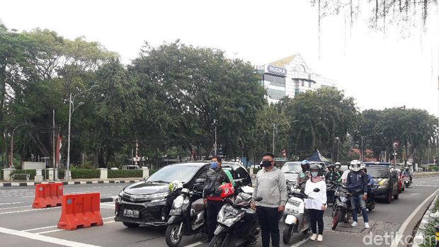 Sejumlah pesepeda motor langsung turun dari motornya ketika polisi meminta berhenti. Mereka juga tampak berdiri tegak. Meski demikian, tak sedikit juga dari pengendara sepeda motor dan mobil yang enggan berdiri tegak. Mereka tetap duduk di kendaraan masing-masing.