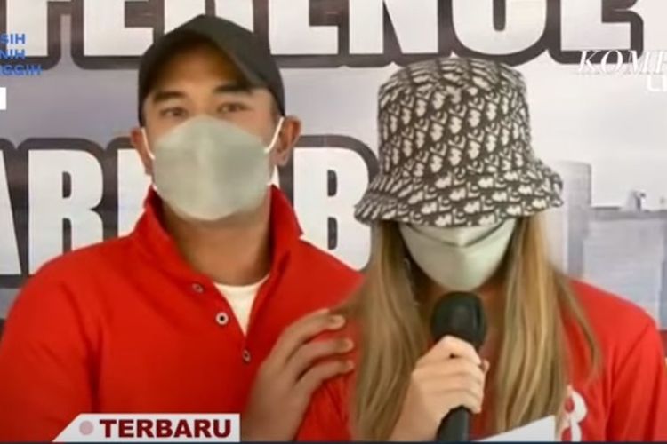 Nia Ramadhani dan Ardi Bakrie dalam jumpa pers di Polres Metro Jakarta Pusat, Sabtu (10/7/2021).(Bidik layar KompasTV)