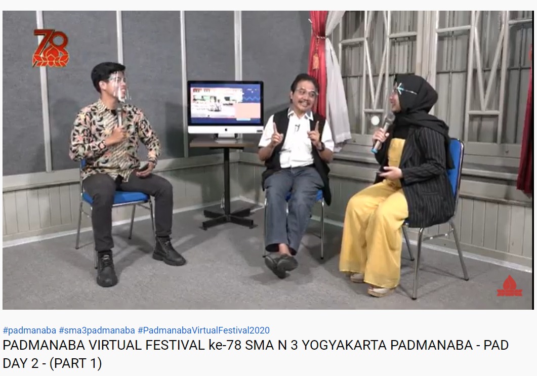 Roy Suryo (tengah) dalam Pad Day Virtual Festival 2020 Live dari Studio Mini Laboratorium Audio-Visual SMA 3 Jogja. (Twitter/@KRMTRoySuryo2)